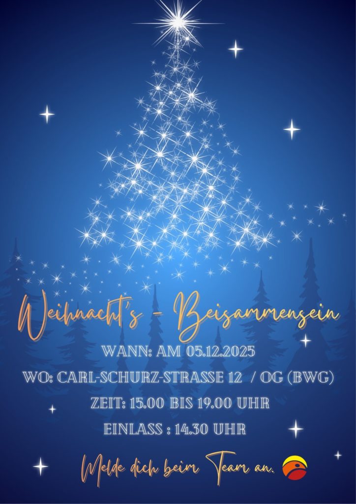 am Freitag, dem 05.12.2025, um 15:00 Uhr (Einlass ab 14:30 Uhr) möchten wir mit euch die Weihnachtszeit einläuten.